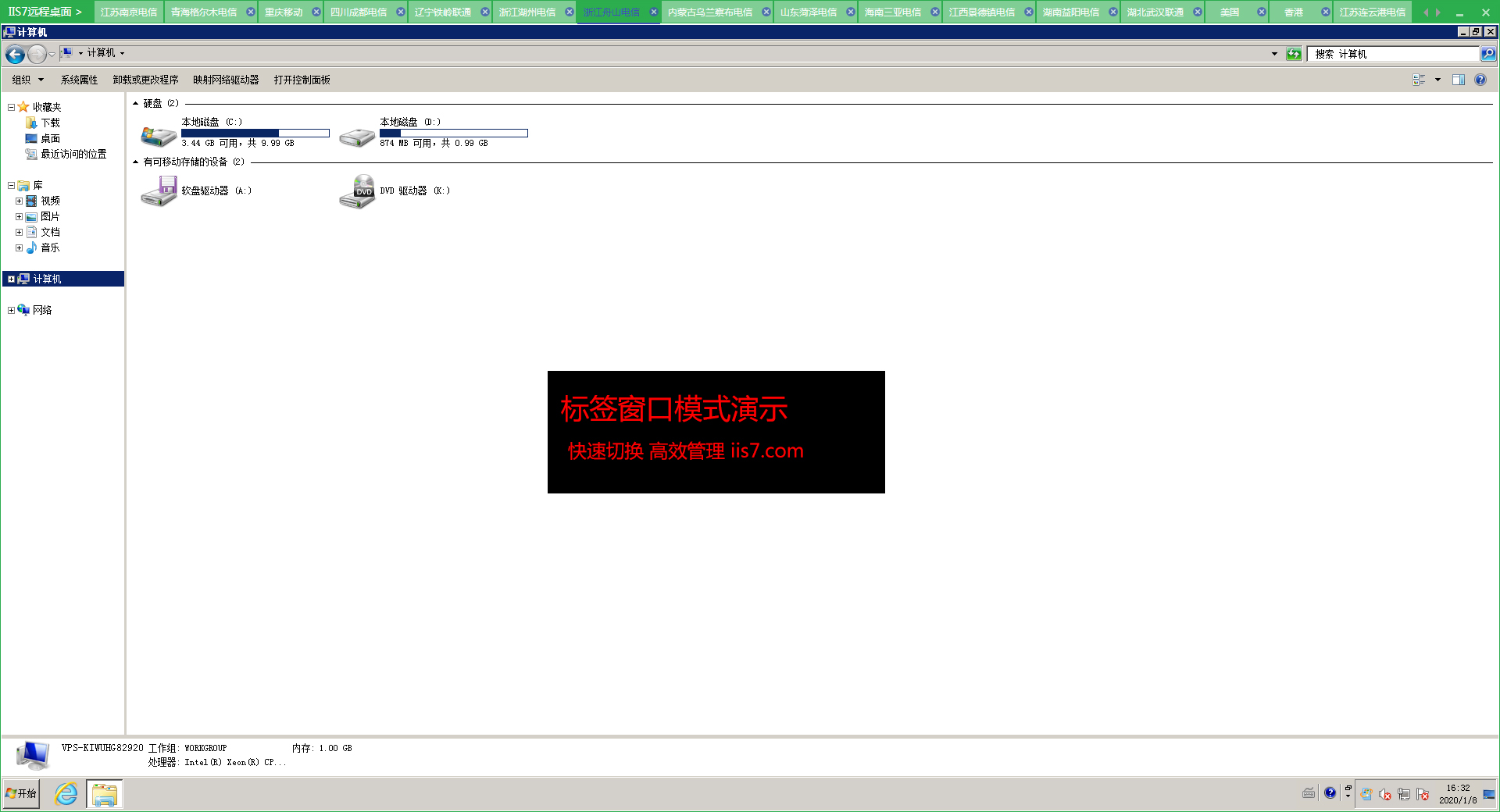 8、打開多臺(tái)服務(wù)器,下面是標(biāo)簽窗口的例子: