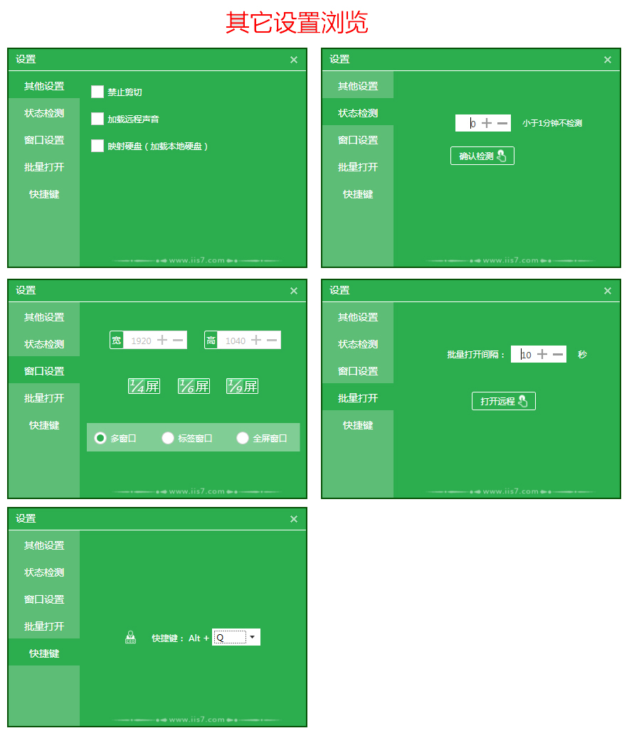 3、為了讓界面更美觀,分辨率、狀態(tài)檢測(cè)、批量開啟間隔等都統(tǒng)一在“其他設(shè)置”按鈕中。